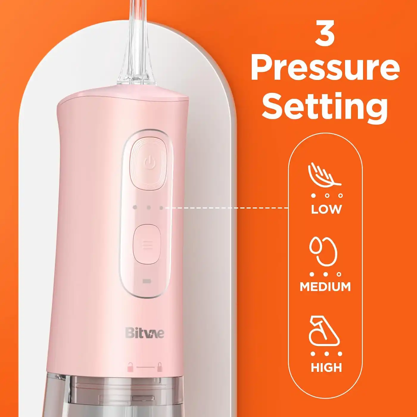 Irrigador Bucal, Bitvae Irrigador Dental Portatil con 6 Boquillas y 3 Modos, Profesional Limpieza Dental, IPX7 Impermeable,USB Recargable Irrigador Dental para Viajar y Uso Doméstico, Rosa Claro