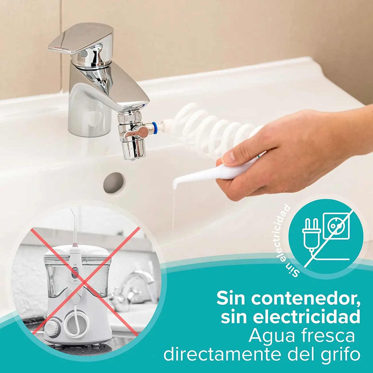 El irrigador de grifo Silodent es mucho más barato que otros modelos del mercado. ¿El motivo? Que prescinde de cualquier batería o fuente de energía, lo que ayuda a que sea un modelo mucho más pequeño y compacto.