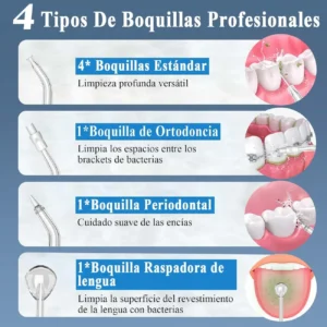 Además, incluye un juego completo de boquillas con el que cuidar de la salud dental de toda la familia en tan solo unos minutos. Si bien su punto más débil es que el depósito es pequeño, lo compensa con una batería de larga duración que te ofrece 5 horas de uso continuo.