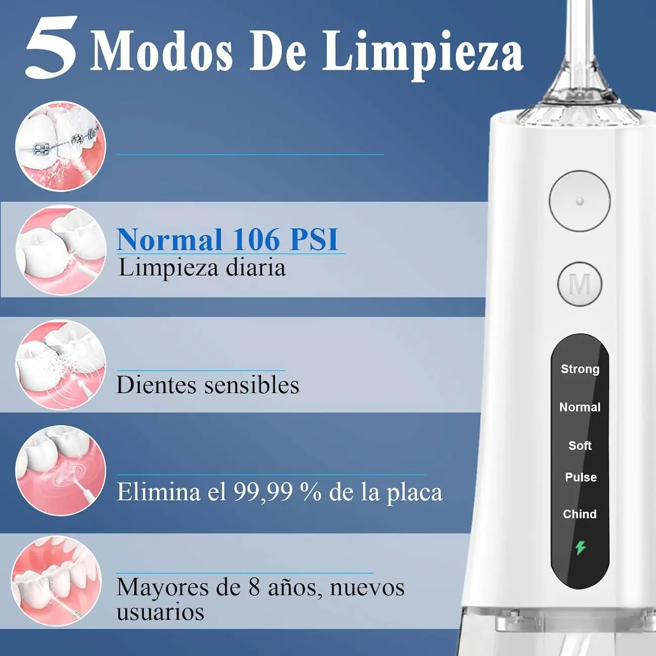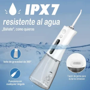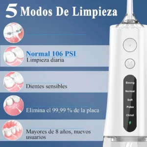 Irrigador Dentales Bucal Electrico Portatil, Irrigador Bucal con adaptador/ 3 Modos/5 Boquillas/Adecuado Para Viajes y Hogar(White)