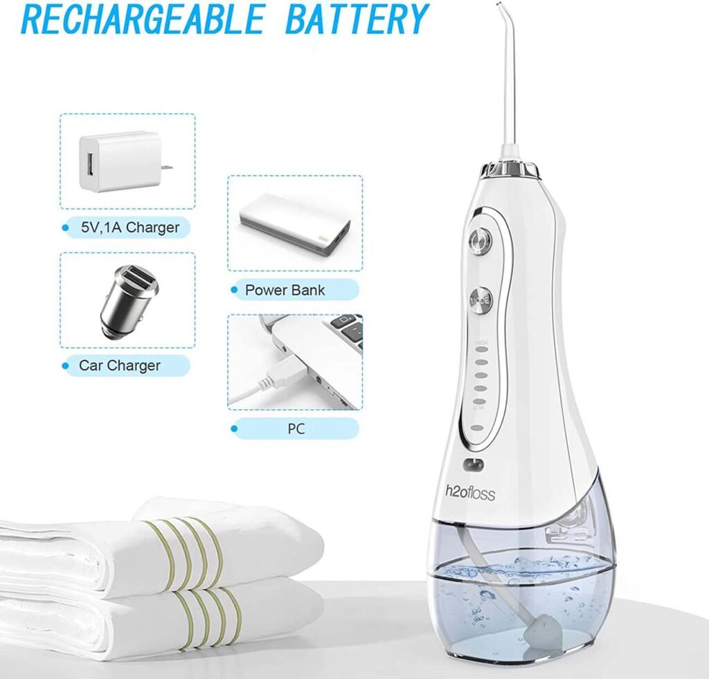 Lo que me ha encantado: El H2ofloss HF-6 es un campeón en portabilidad. Su diseño compacto y ligero lo hace ideal para llevar de viaje, y el hecho de que venga con una bolsa de viaje y un estuche para las boquillas es un gran plus. Además, su batería recargable USB es extremadamente conveniente. He encontrado que la carga dura bastante, alrededor de dos semanas con uso diario en niveles de potencia media, lo cual es bastante impresionante.