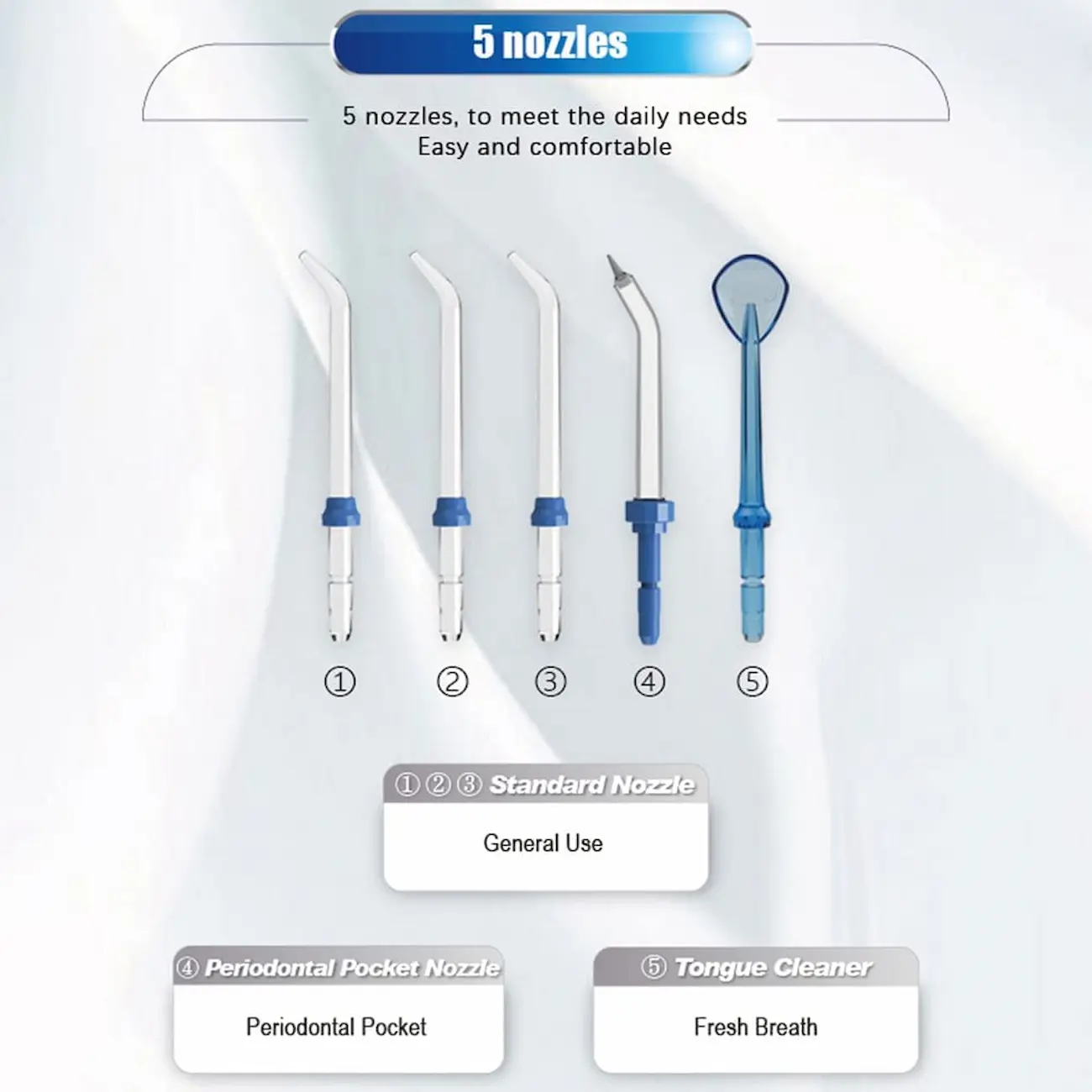 Con una gran potencia, múltiples boquillas y una regulación de la presión excelente, ¡se acabaron los problemas de dientes en casa!