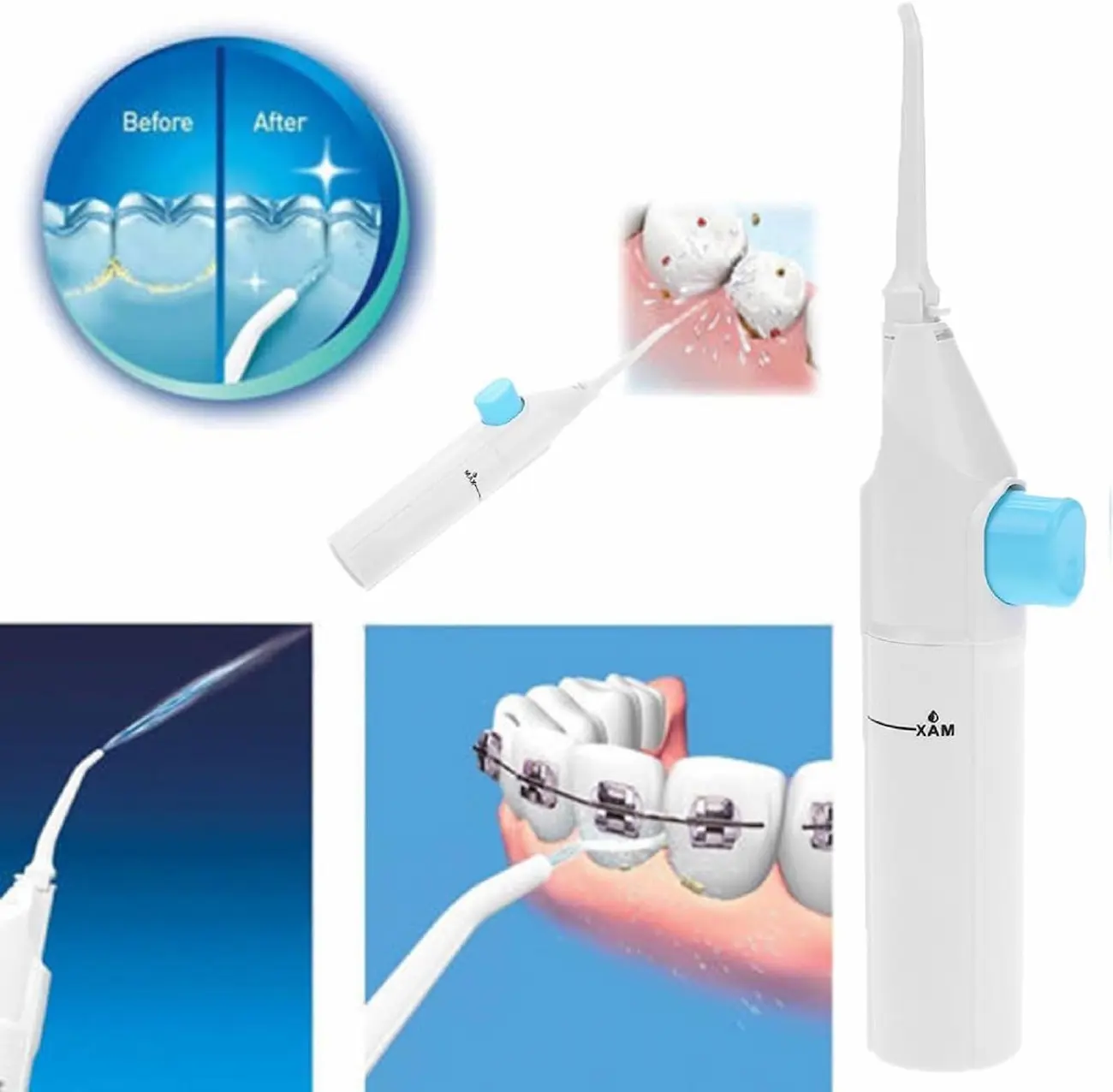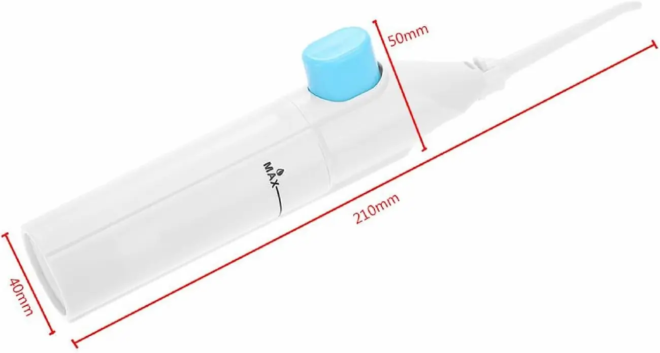 Se trata de un modelo manual que utiliza tecnología de aire a presión para disparar un chorro de agua suave, pero potente. Gracias a esta tecnología se acaba con los restos de placa, las partículas de alimento que quedan entre los dientes y también puede usarse para acabar con el mal aliento.