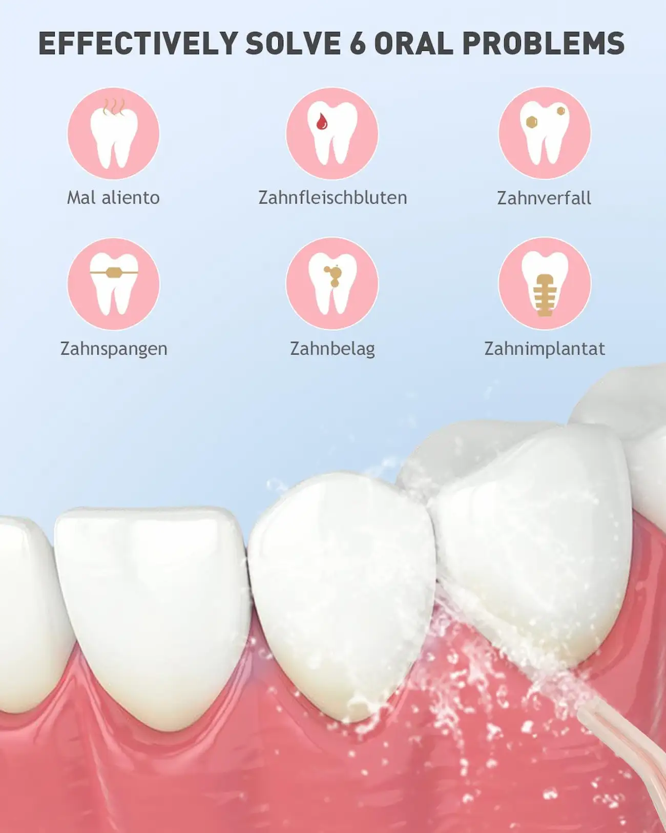 El irrigador portátil OR01 de Oralfree ofrece una limpieza interdental profunda gracias a un chorro a presión que alcanza las áreas a las que un cepillo de dientes no puede acceder, acabando con los restos de placa bacteriana y restos de comida.