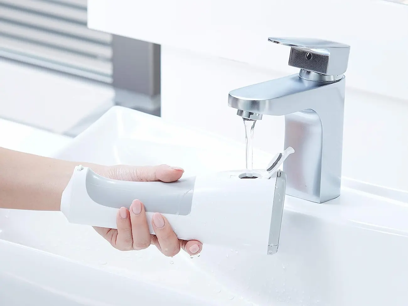 El irrigador cuenta con 5 niveles de presión, alcanzando un máximo de 1500 impulsos por minuto, lo que te permite retirar fácilmente los restos de comida y suciedad de la boca de forma eficaz.