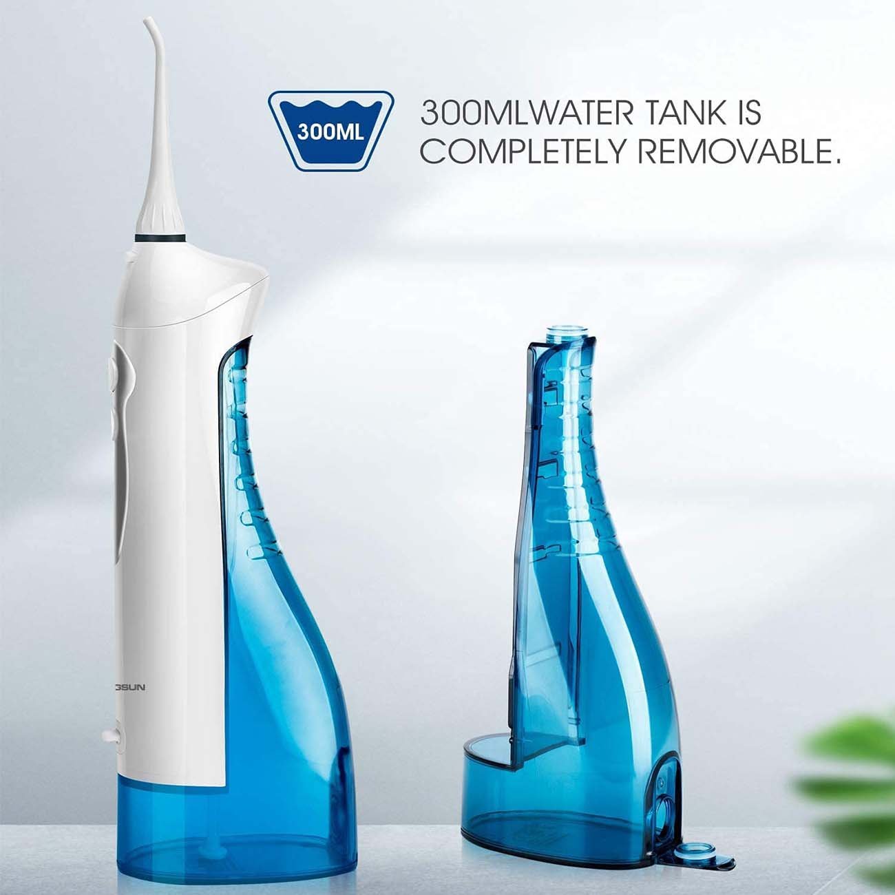 Irrigador Bucal Portatil Dental de Hangsun Inalámbrico USB Recargable con un Tanque de Agua 300ml y 8 Boquillas para Viajar y Uso Doméstico