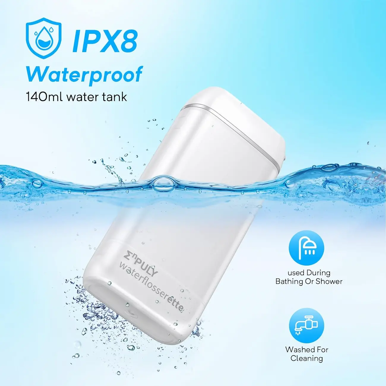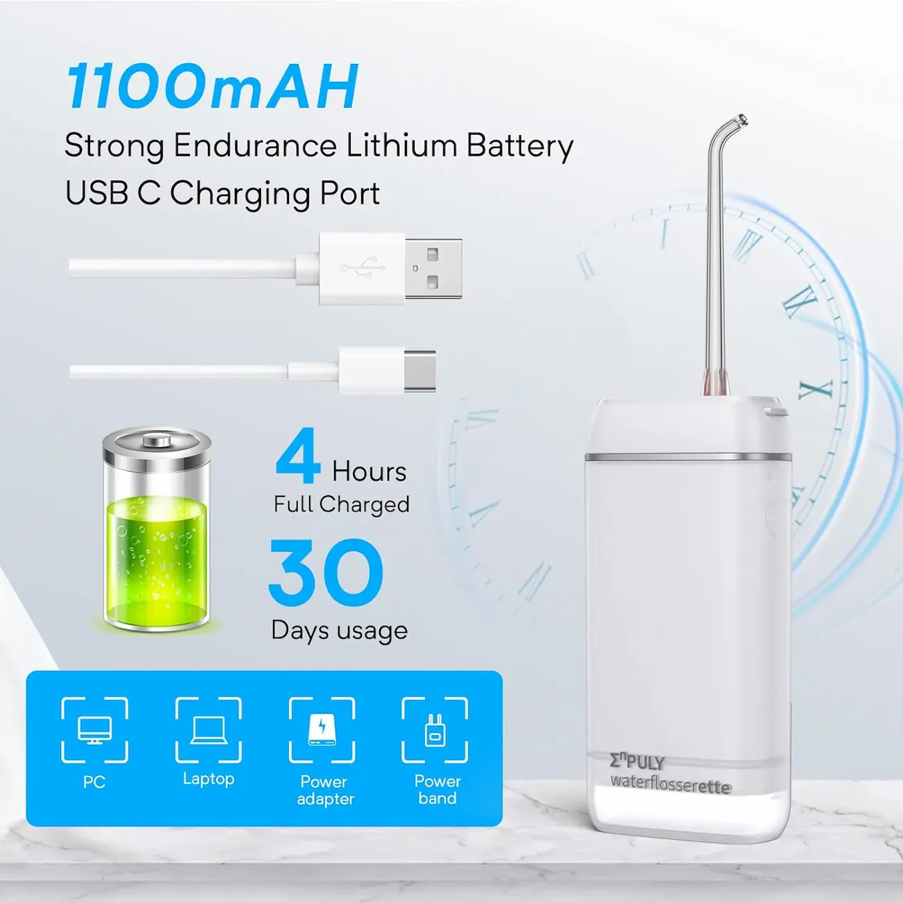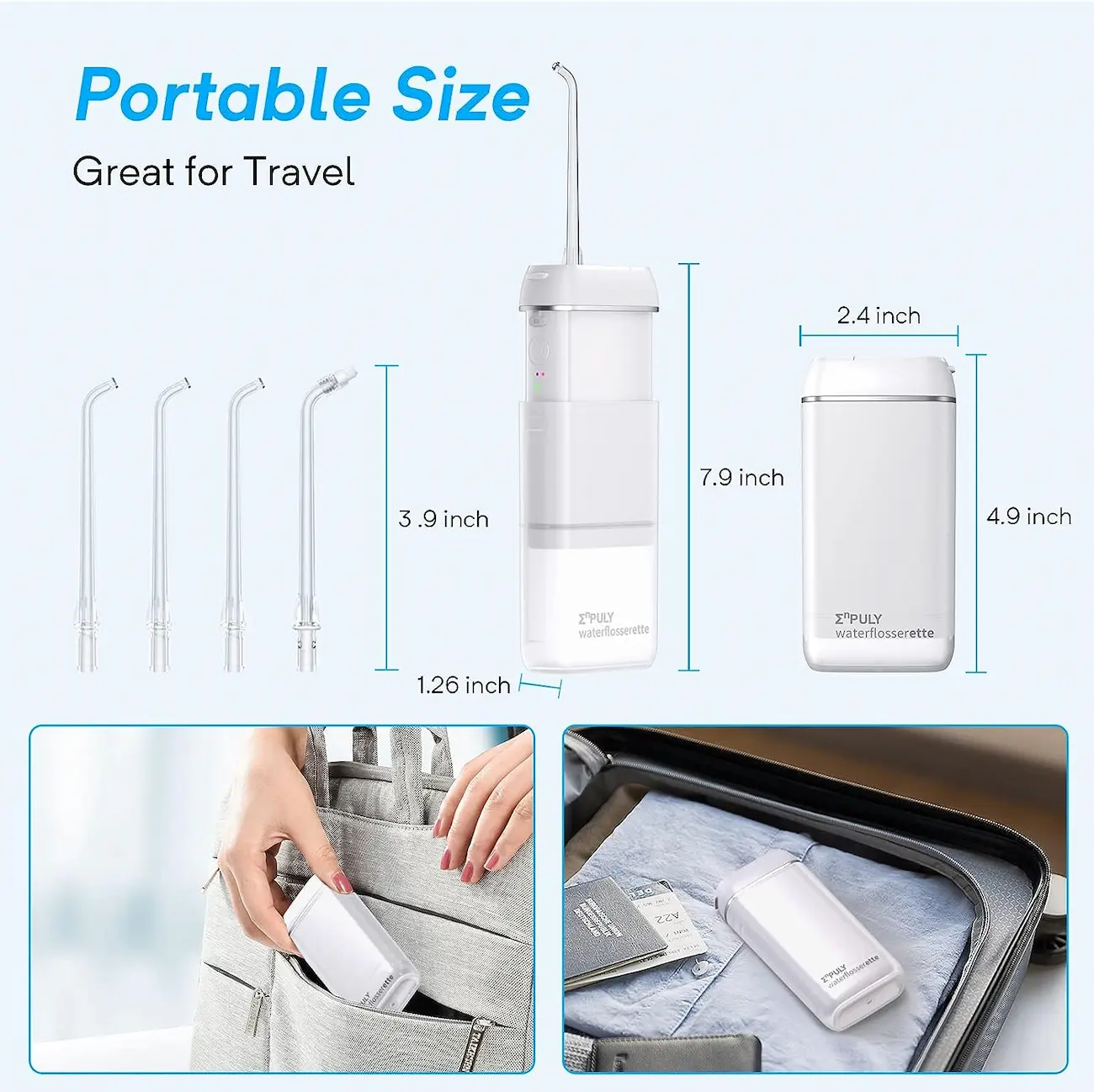 ENPULY Irrigadores Bucales Portatil, Irrigador Dental Viaje con 5 Boquillas 5 Modos, IPX7 USB Irrigador Bucal a Batería, 200ml Recargable Irrigador limpiador Dientes Agua Presion