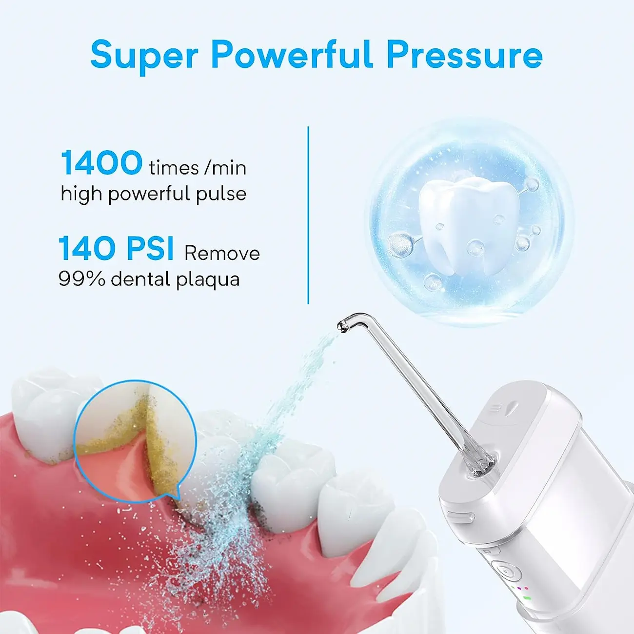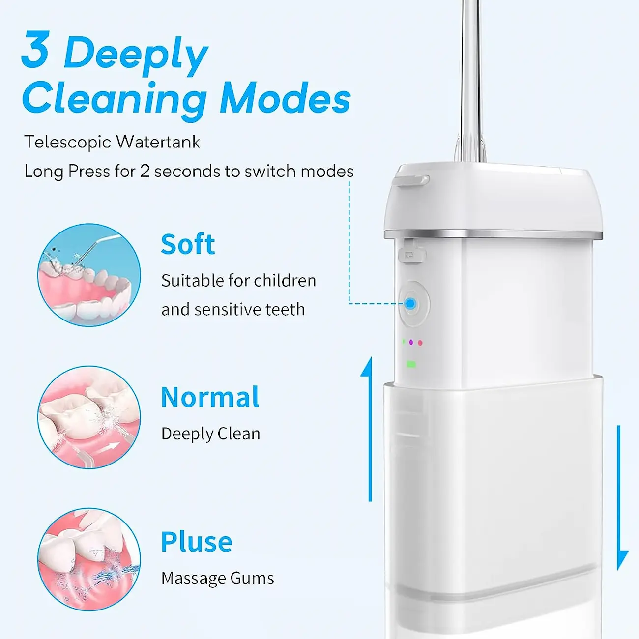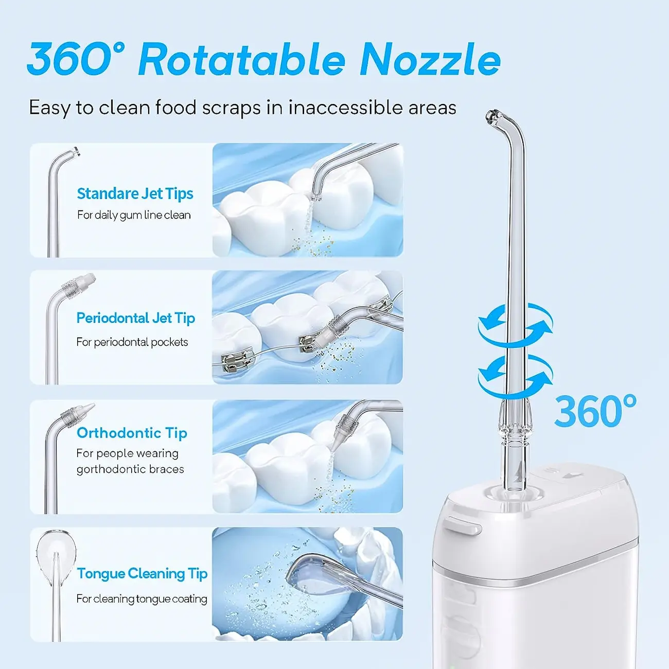 Irrigador Dentales Bucal Electrico Portatil, Irrigador Bucal con adaptador/ 3 Modos/5 Boquillas/Adecuado Para Viajes y Hogar(White)