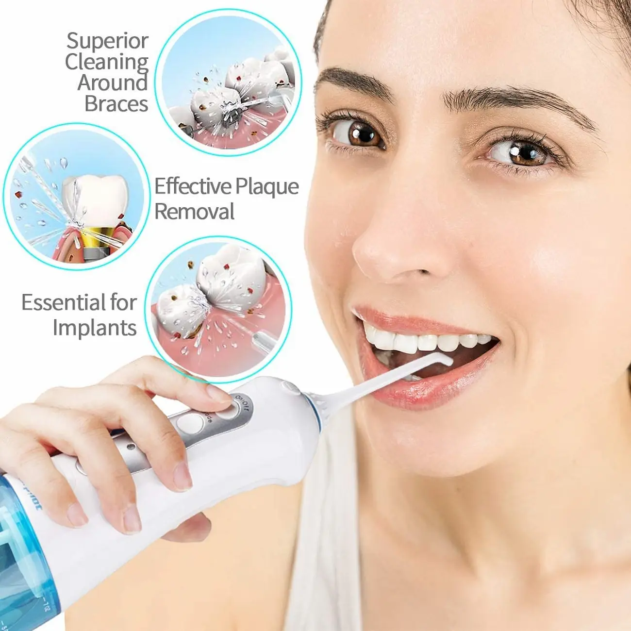 • 【LIMPIEZA PROFUNDA & ALTA POTENCIA】Irrigador dental profesional cuenta con la alta potencia. Es suficiente para completar la limpieza bucal y las…