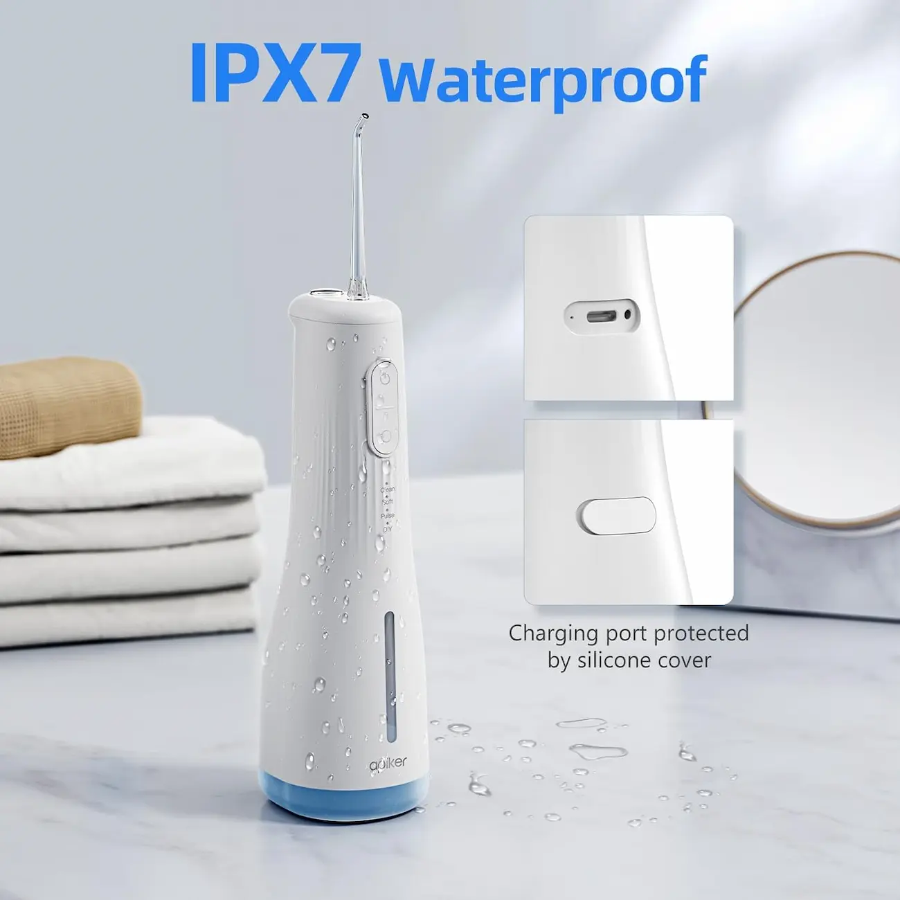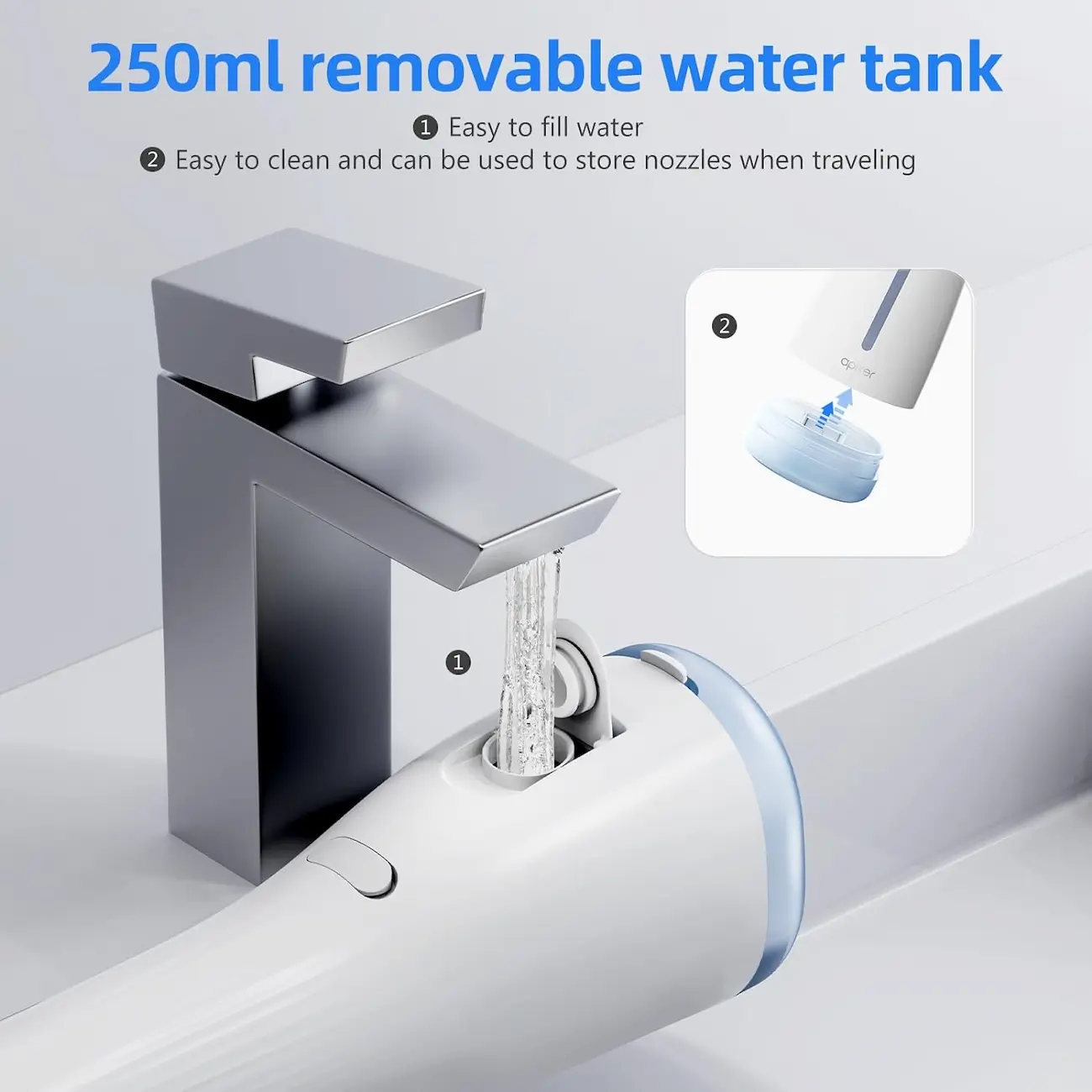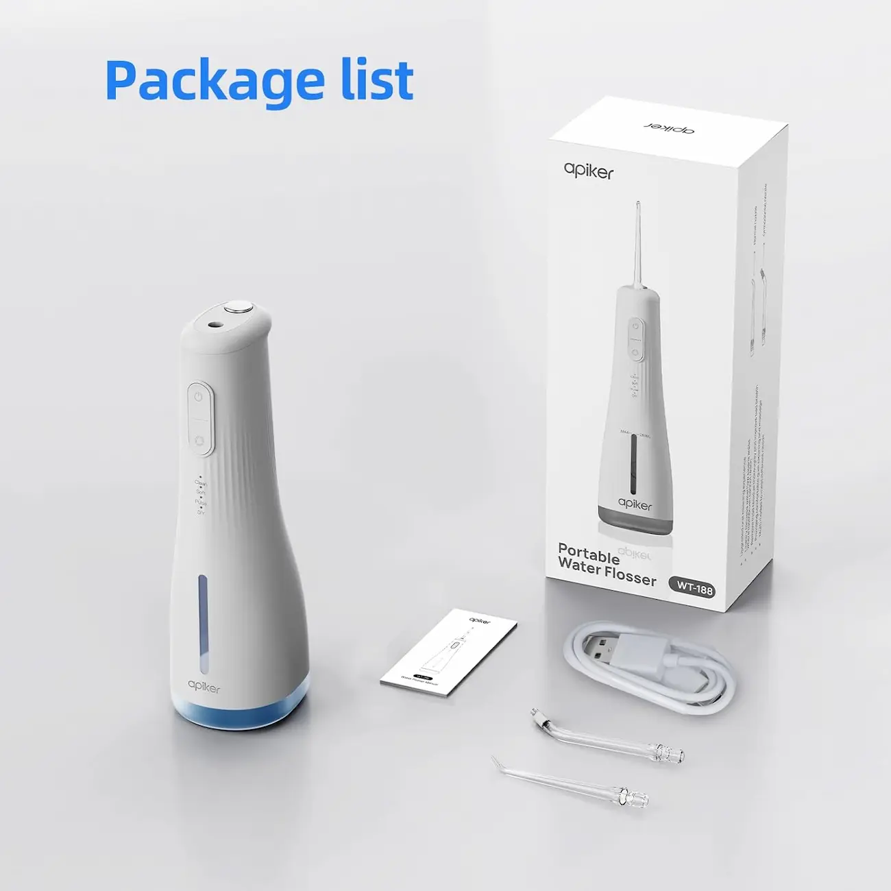 Apiker Irrigador Bucal Portatil con 2 Boquillas,Irrigador Dental Portatil 250ML, 4 Modos,Recargable Irrigador limpiador Dientes IPX7 Impermeable
