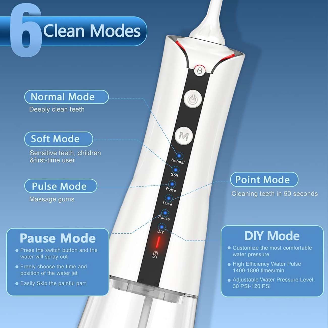 Gracias a las boquillas que incluye, podrás realizar una limpieza completa de tu boca, adaptada a tus necesidades específicas. Sumado al hecho de que puedes llevarlo de viaje a cualquier lugar, puesto que se trata de un modelo inalámbrico, ¡su precio resulta hasta barato! En pocas palabras, estás ante uno de los irrigadores más económicos y completos del mercado.